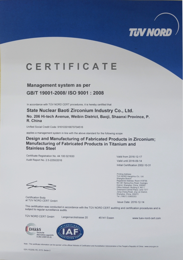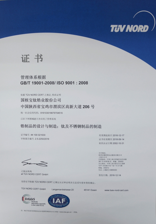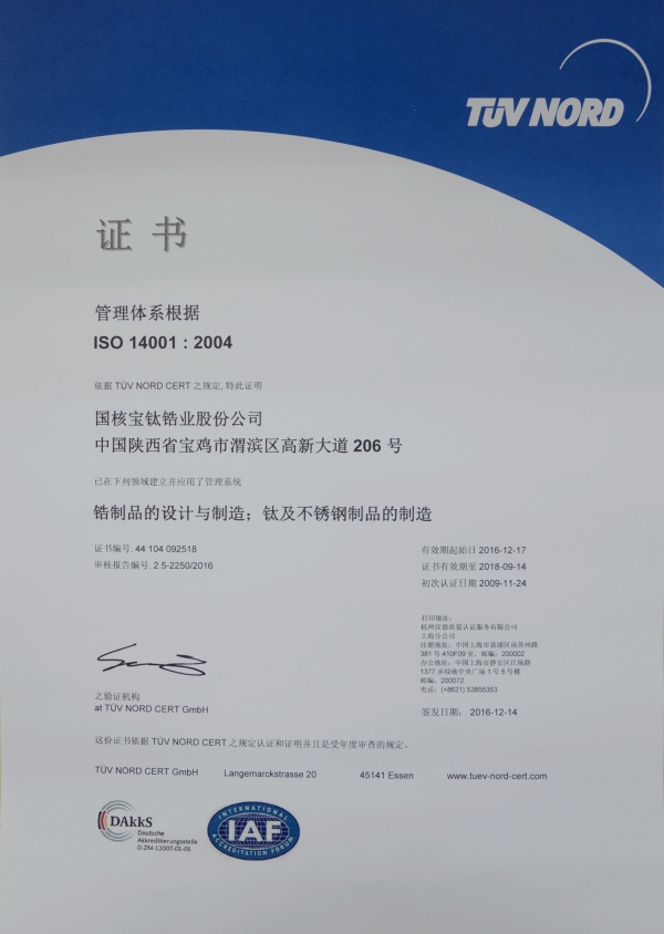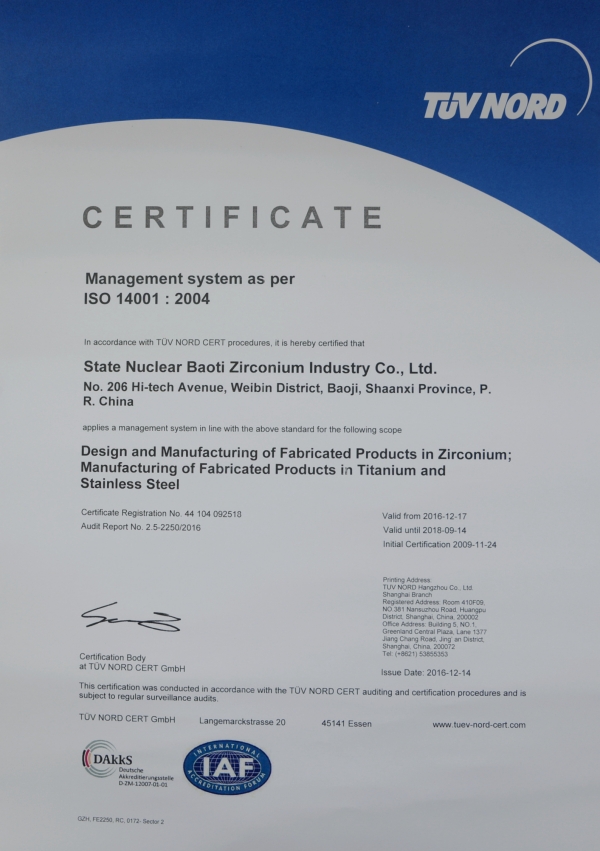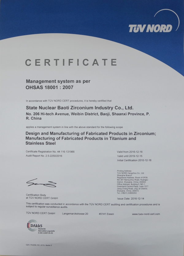通過(guò)德國(guó)漢德公司對(duì)ISO9001、BS OHSAS 18001、ISO14001體系認(rèn)證
