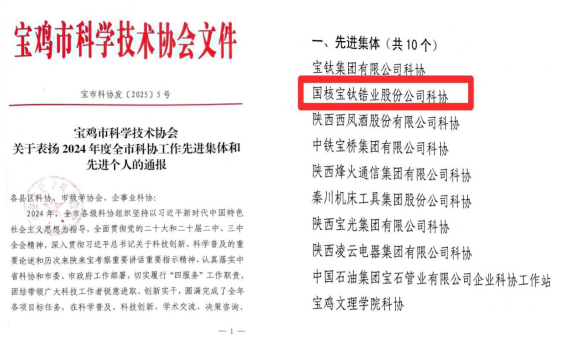 公司科協(xié)榮獲寶雞市科協(xié)2024年度先進(jìn)集體