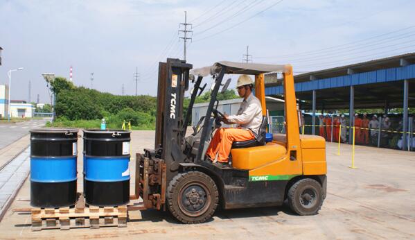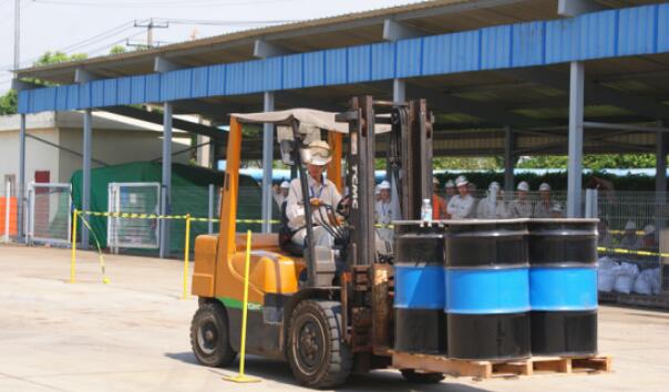 除了規模升級,比賽的難度也所有提高,在以往只是托運托盤的基礎上,增加了四只鐵桶,并且在鐵桶上放置飲料瓶,以考察選手駕駛叉車的穩定性和合規性,真正以平時作業的安全要求和操作規范來進行比賽,并且根據各車間實際操作的情況,分為柴油車組和電瓶車組分別競爭,確保公正。參賽選手們紛紛表示,公司的培訓活動越來越規范了,這對員工的安全意識和操作技能的提高都有著促進的作用。